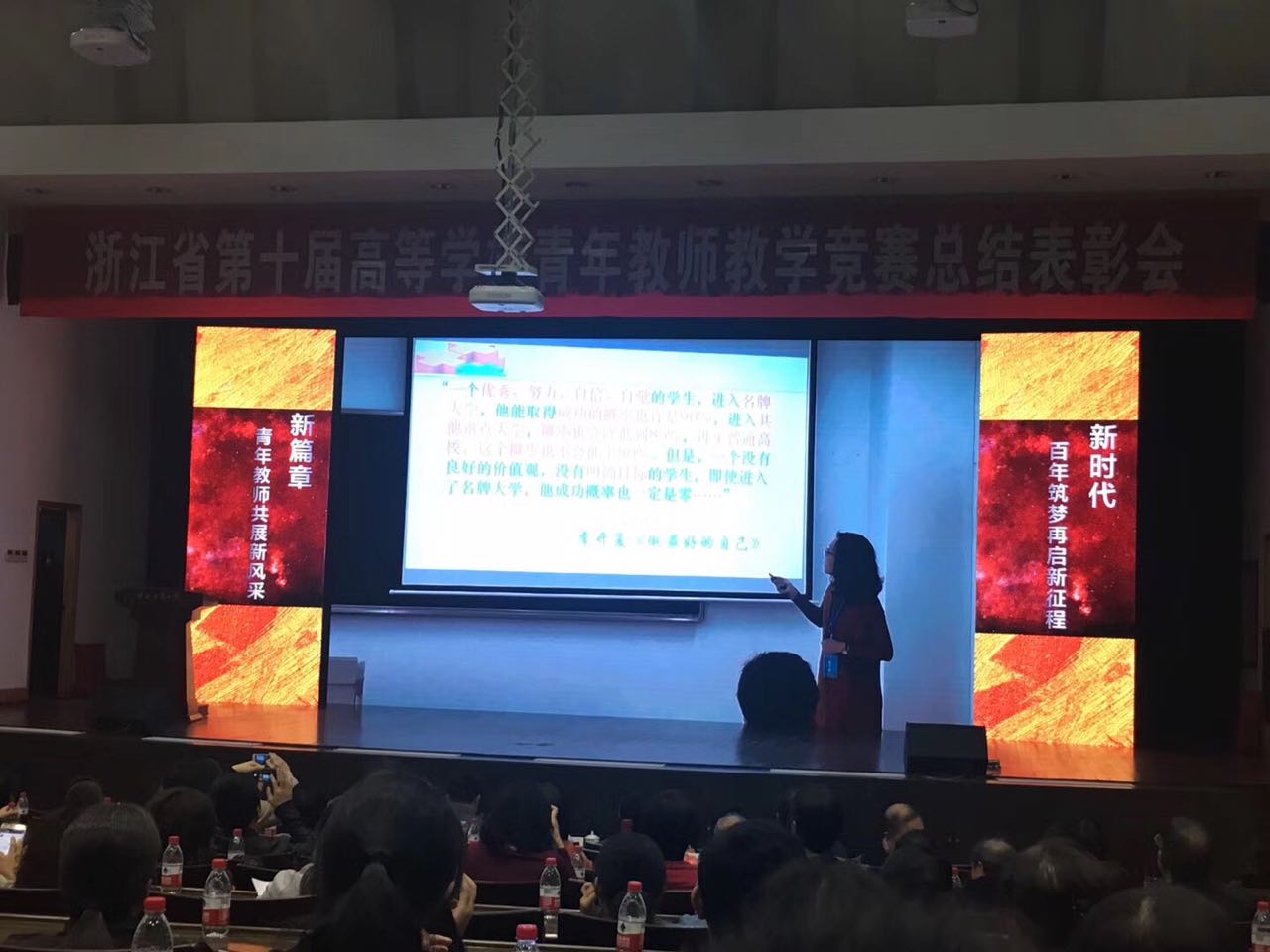 浙江省高校第十届青年教师教学技能竞赛由浙江省教育厅和省教育工会联合主办,每两年举办一次,目前已先后举办了十次。本次比赛,规模空前,先后吸引了全省100多所高校的3000多名教师参加,经过网络视频评审与遴选,123名教师参加现场决赛。本次省青年教师教学技能竞赛决赛阶段的比赛按照学科划分为理科组、工科组、文科组与思政组四个组别,所有参赛教师必须严格回避单位信息,现场随机抽签选取讲课内容与比赛顺序,进行20分钟的课堂教学展示。评委通过教学设计、课堂教学和教学反思三个环节,对参赛教师的教学内容、教学形式、教学过程、师生互动情况、教学效果及教师的仪表、语言及教学反思的内容进行综合考评。