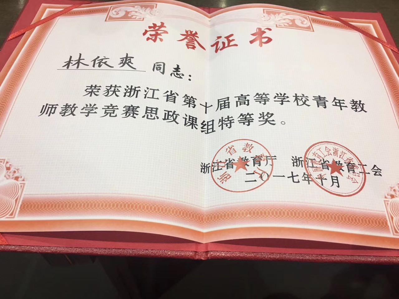 ——记yl永利集团官网登录林依爽喜获省高校青年教师教学竞赛思政组特等奖