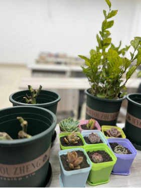 为了成功举办此次活动,之江文化研习社从策划案的拟定到土壤的选定再到树木品种的确定,都做了仔细筛选。黑色的土壤比较肥沃,更适合种植。多肉比较耐旱并且对于新手小白非常友好。在活动当天,看着一个个小巧可爱的多肉,大家都摩拳擦掌,精心挑选着自己心仪的“植物嘉宾”。