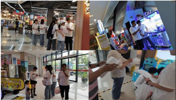 一大早,我们小队的成员便来到了新丰社区的邻里中心。邻里中心设置了社区商业、便民服务点、社区食堂、托育驿站、养老驿站、社区议事厅等功能空间。小队成员分头行动,带着手上的调查问卷以及提前准备好的问题开始采访新丰社区的居民。在调查初期,我们遇到了许多的困难,既有刚开始的紧张和不敢开口,也有一些居民对我们的调研的拒访不配合态度。不过在我们不断调整话术和坚持不懈的努力之下,大半天下来,我们终于完成了一大半的问卷任务。绝大部分居民高度肯定了新丰未来社区的建设工作,他们十分满意现在的生活,认为新丰未来社区因地制宜、应民所需,植入了多种未来生活场景。特别是新丰社区打造的智慧漫步道,它串起了社区内的多个公共区域,实现了社区公共空间的联动,让社区居民的生活非常智慧便捷。