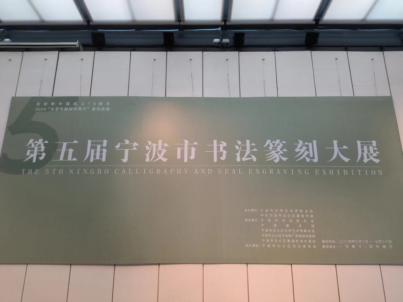 第二日上午团队来到宁波美术馆,馆内正好召开了宁波书法篆刻大展。在白纸黑字间,在龙飞凤舞上,同学们有幸欣赏了众多优秀的艺术作品,感受到浓厚的艺术魅力。许多作品的内容与宁波自身的历史文化紧密连接,如天一阁诗文,黄宗羲、王阳明的名篇,古典文化在现代空间中继续发声。