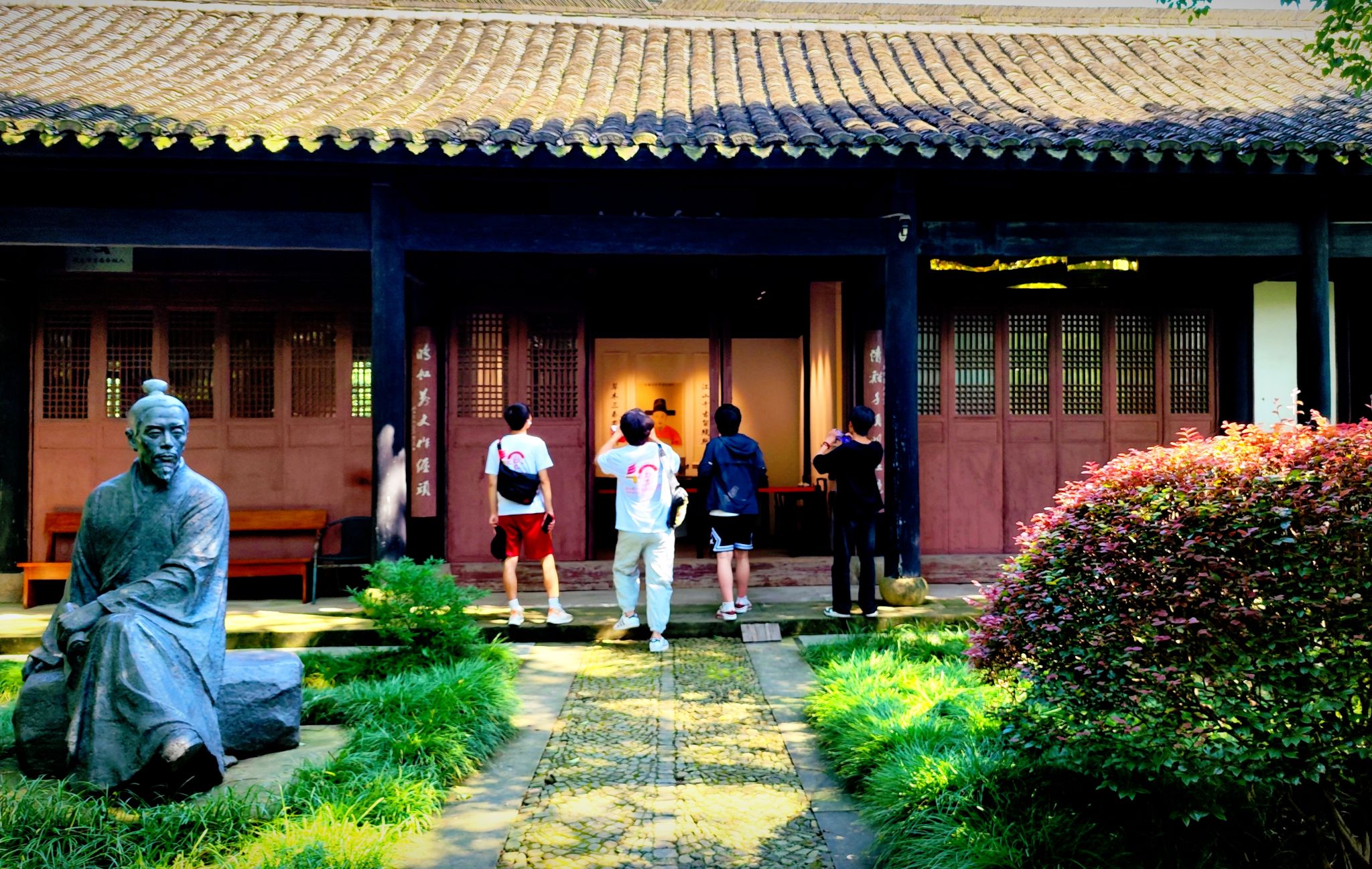 黄梨洲文化园内,林木葱郁,泉水叮咚,鸟声啼啭,美景与哲人相得益彰。路过的当地人说,特别是春天桃花盛开时那真叫一个美呀。这恰应了梨洲先生所题诗“昔年层次作邻家,依旧水声彻夜哗。风景过清销不尽,满溪明目浸桃花。”