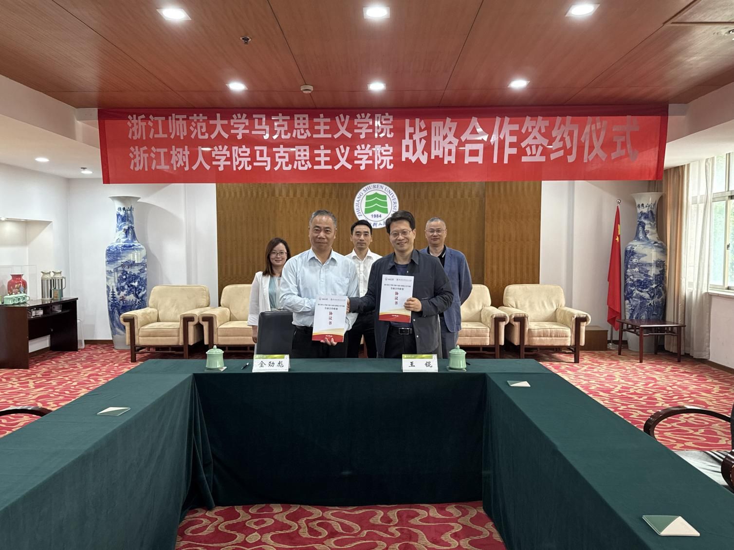 4月24日上午,公司yl永利集团官网登录与浙江师范大学yl永利集团官网登录战略合作关系签约仪式在杭州校区综合楼312室举行。浙江师范大学马院经理王锟、公司马院经理金劲彪分别代表双方签署协议,此举标志着两校在马克思主义理论团队建设领域开启深度协作新篇章,更为公司马克思主义理论学科申报硕士学位点注入强劲动能。