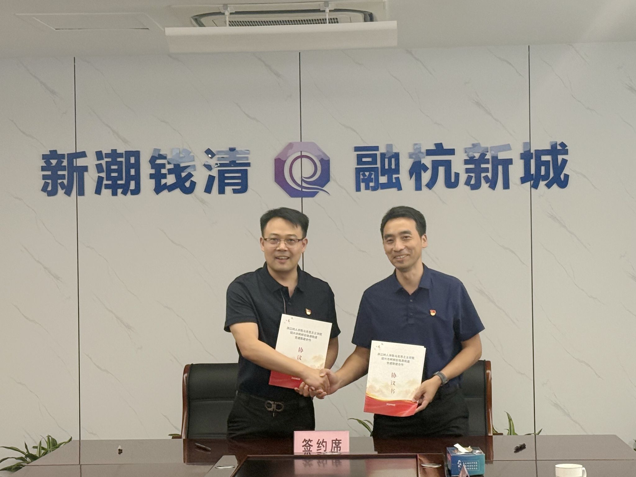 签约仪式前,公司副经理冯伟一行实地调研了钱清村党员主题党日规范化建设示范点。钱清村党委书记陈关友、钱清街道党工委委员傅链华详细介绍了“钱清有我”党建品牌及“1351”工作法,全面展示了钱清村党建引领的实践成果。随后,大家参观了“一钱太守”文化教学点,深入了解钱清历史文化传承与廉政教育特色,为校地文化共建提供了新场地、新思路。