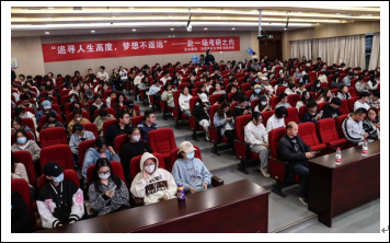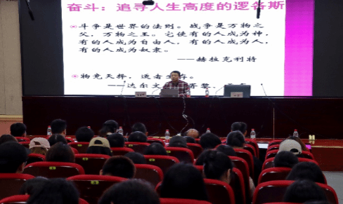在个人简介过后,夏教授从哲学高度锁定人生奋斗主题,用平实的语言启迪莘莘学子:奋斗是生命的血液、奋斗是人生的灵魂,考研是老员工追梦的阶梯。他说,“面对人生使命压力,学子只能与时俱进,师者只能因势利导。”