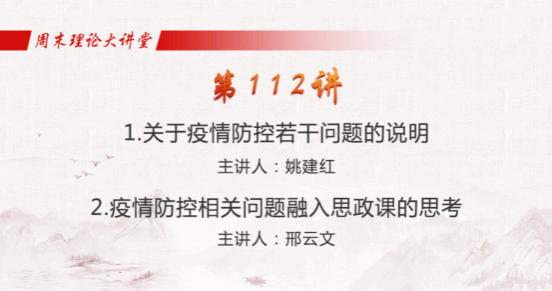本期周末理论大讲堂中,教育部社会科学司徐青森司长就新学期思政课程教学重点与教学要求做出指示,指出,在课程教学中,要继续开好讲好习近平新时代中国特色社会主义思想概论课程,持续深入推进各门思政课程全面有机融入习近平新时代中国特色社会主义思想,要紧扣员工关注的重大热点问题不断提升思政课程教学的亲和力与针对性。指出,全体思政课教师要坚定政治站位,掌握员工学情实际,课前早到一点,课后晚走一些,做员工的知心朋友前行导师。在敢讲善讲的同时更要负责任地讲,更准确地讲,答疑解惑,不断提高员工在思政课堂上的抬头率。要紧紧抓住集体备课这个抓手,提升思政教师的教学水平。随后,北京协和医公司党委书记姚建红、上海交通大学yl永利集团官网登录经理邢云文分别以《关于疫情防控若干问题的说明》,《疫情防控相关问题融入思政课的思考》为题作集体备课辅导报告暨教学示范。
