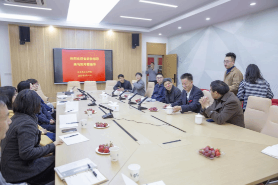 周光迅经理热情接待,随后召开座谈,公司教研室主任、副主任,学科带头人等参与座谈。周光迅经理介绍了公司建院五年以来的发展历程、教学改革、团队建设等情况。倪海鹰委员肯定了马院取得的成绩,并亲切讲述了自身成长历程,在场各位都听得津津有味,对其传奇历程不由啧啧称奇。随后,倪海鹰委员与周进副会长在从历史发展进程中为公司的发展方向作出了建议并相信公司能够提质升格、申硕攻坚,构建新时代马院。