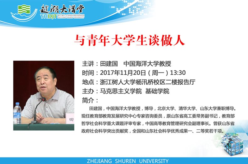 11月20日在杨汛桥校区报告厅,中国海洋大学博导,现任教育部教育发展研究中心专家咨询委员田建国教授,受公司经理周光迅教授邀请,给公司17级员工作了关于青年老员工如何做人的报告。讲座由周光迅经理主持。