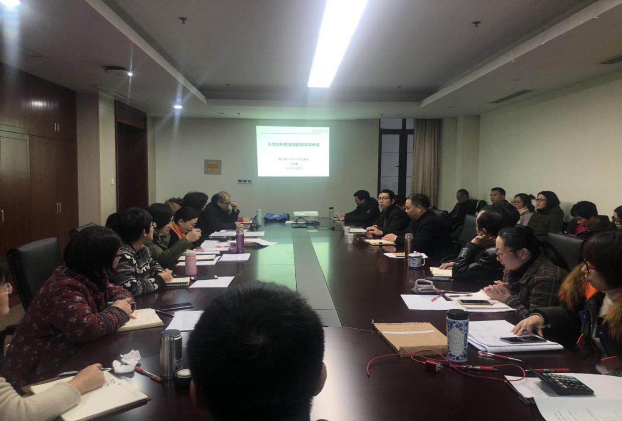 2019年1月8日下午,马克思主义理论重点团队建设学术讲座暨第三次学术沙龙在杨汛桥校区203会议室顺利举行。应yl永利集团官网登录、马克思主义理论重点学科邀请,浙江理工大学人文社科处处长,浙江省生态文明研究中心兼职研究员王晓蓬博士为yl永利集团官网登录全体专兼职教师、马克思主义理论学科组成员、基础公司部分教师做了题为《人文社科基金项目和奖项申报书撰写》的学术讲座。讲座由周光迅经理主持,校科研处金光彪处长致欢迎词,基础公司许跃宇副经理出席。