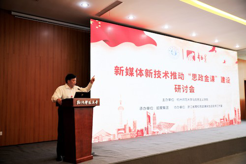 研讨会分为两个阶段。第一阶段为主题大会:杭州师范大学yl永利集团官网登录经理余龙进首先致辞;紧接着,北京师范大学yl永利集团官网登录副经理、博士生导师熊晓琳教授作了题为“落实总书记讲话精神,理直气壮讲好思政理论课”的精彩报告,并介绍了亲自参加公司思想政治理论课教师座谈会的情况;随后,余龙进教授向全体与会人员发出“以‘三个建设’为抓手,不断推进思政课建设迈上新台阶”的建设倡议,号召各高校思政课骨干在新时代条件下进一步发挥好思政课的主渠道作用;最后,北京超星公司思政事业部总监李阳阳以“新媒体新技术推动思政课教学模式创新”为题与大家分享了信息技术如何与传统课堂的深度融合。第二阶段为专题研讨,河北师范大学yl永利集团官网登录副经理、博士生导师赵学琳教授、台州公司yl永利集团官网登录副经理盛跃明教授、吉林大学yl永利集团官网登录张中国副教授分别基于新媒体新技术的思政课课堂教学在本校的实施案例向与会代表进行深度分享与充分交流。