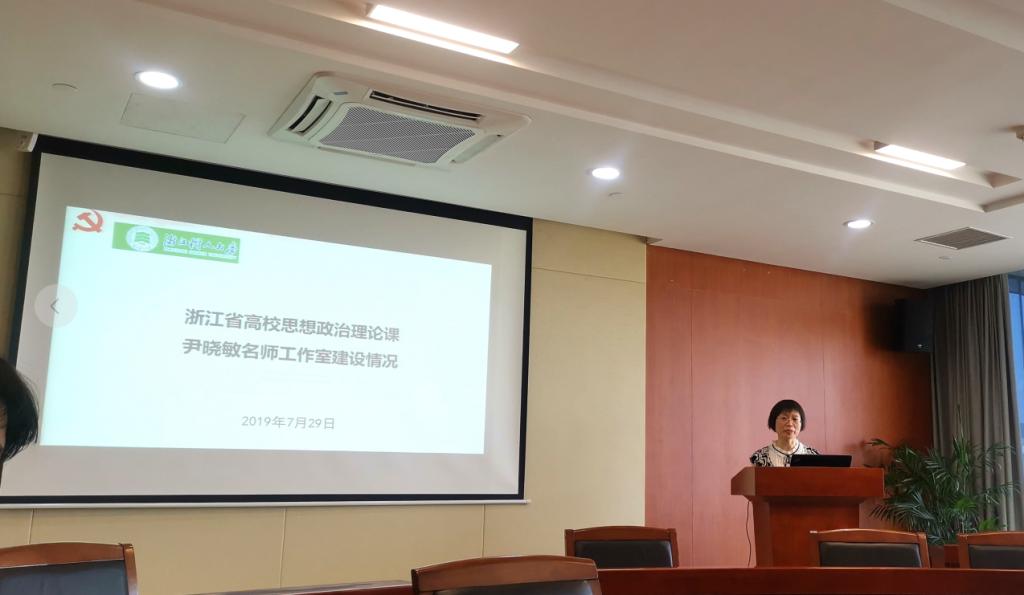 其中,第四分论坛由余龙进、尹晓敏和孙叶飞等三个浙江省高校思政名师工作室承办,论坛上,还介绍了三个省级名师工作室的建设情况。尹晓敏老师作为第四分会场的承办方进行了关于浙江树人大学名师工作室建设的主题报告。