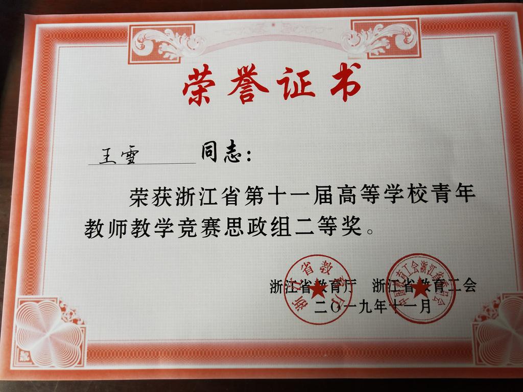 11月3日,浙江省第11届高校青年教师教学竞赛在浙江工商大学圆满落幕,全省61所高校120名青年教师参加决赛。经过两天的激烈角逐,公司三位参赛教师凭借高水准的教学技能、卓有特色的教学风格喜获佳绩,其中,我院王雪老师荣获思政组竞赛二等奖。