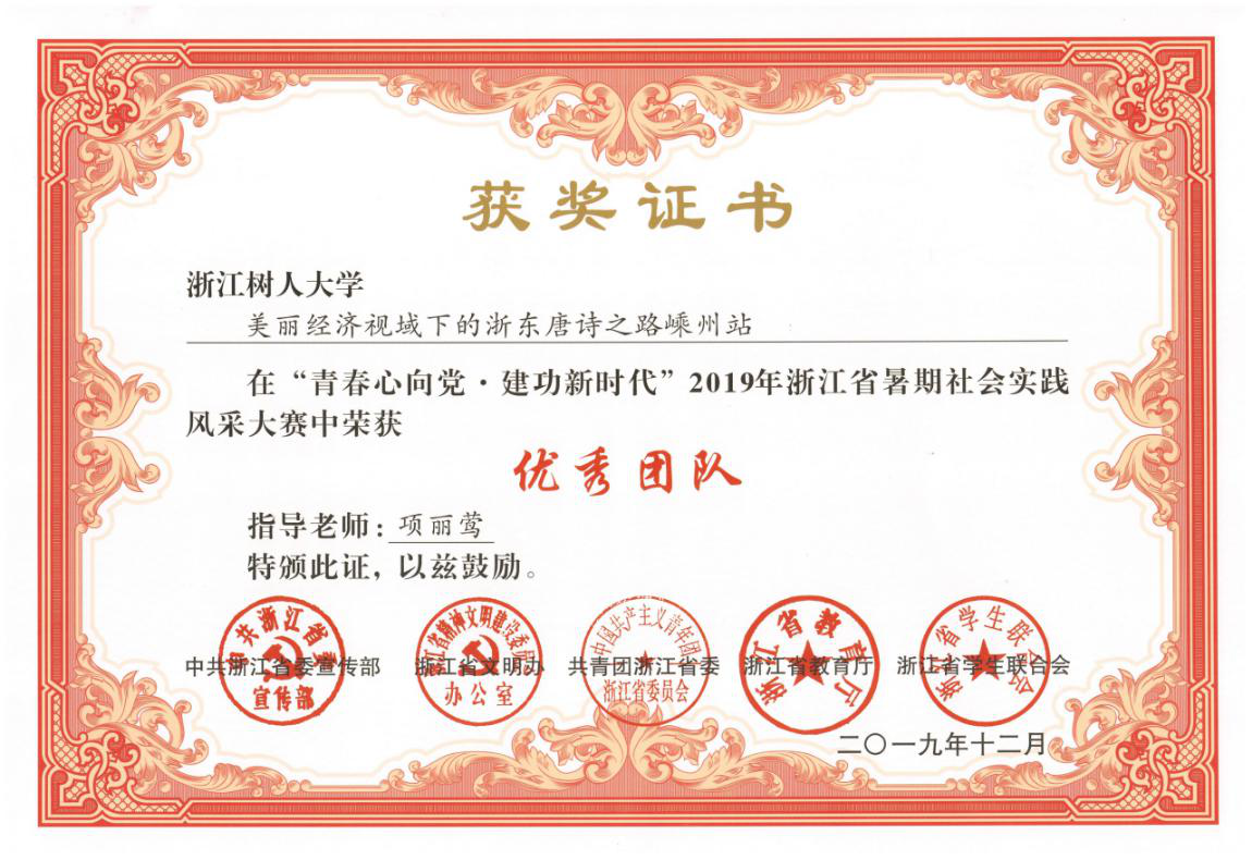 此次主题为“青春心向党·建功新时代”的暑期社会实践风采大赛由浙江省委宣传部、省文明办、省教育厅、团省委、省学联共同主办,是全省各高校暑期实践队伍展示实践成果,交流实践经验的重要平台。公司派出项丽莺老师指导的“美丽经济视域下的浙东唐诗之路嵊州站”暑期实践团队、林依爽老师指导的“百年五四精神在当代的传承和践行”暑期实践团队参加此次比赛。这两支队伍在19年度暑期实践中表现优异,在校内各项评比中已收获多项荣誉,相关研究成果建议获重要媒体转载。
