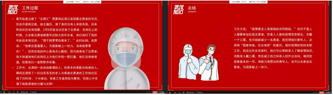 “2020年新年伊始,我们经历了并正在继续经受着新型冠状病毒这一涉及重大医疗公共安全事件危机的挑战和考验。生命重于泰山,疫情就是命令,防控就是责任,面临这场突如其来的考验,全国各族人民团结一心,奋勇战“疫”,在控制传染源,切断传播途径,第一时间共享病毒基因组序列等方面作出了突出贡献。青年是网络媒体的主要使用者,也是网络信息的重要传播者,更是父母长辈眼中可靠的信息来源者。面对谣言,这一特殊群体的认识和态度更显重要,这也是我们在进行疫情防控战争中必须要面对的问题。谣言满天飞,战“役”进行时,为了加深同学们对于疫情下的青年人的责任与担当的认识,增强“四个意识”、坚定“四个自信”,做到“两个维护”,特此开展本次活动。”中特研读会会长沈欣怡与蓝图创业社社长刘钦点明活动主旨,并进入分享环节。