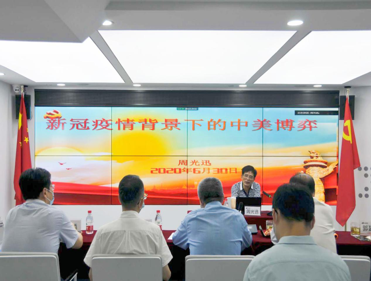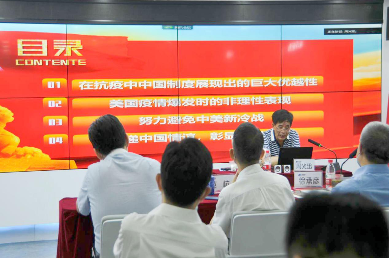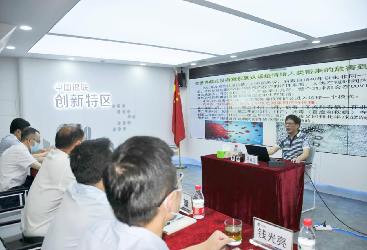 为庆祝中国共产党成立99周年,将马克思主义理论、党的政策理论宣讲延伸至第二课堂,激励并引导广大党员干部在“不忘初心、牢记使命”中砥砺前行。6月30日,周光迅经理受邀赴中国银联浙江分公司党支部做题为《新冠疫情背景下的中美博弈》的主题宣讲。