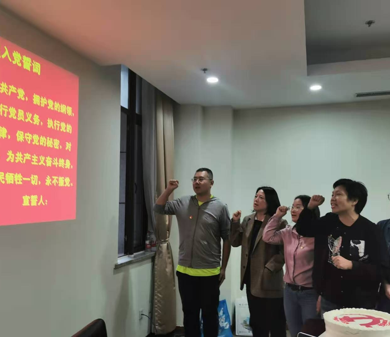 随后,公司党支部为党员教师集体庆生,这是今年公司直属党支部成立以来的第一次党员政治生日会,党员们高举右手,面向党旗,庄严宣誓,在重温誓词中深刻感受共产党员的荣誉感、责任感和使命感。