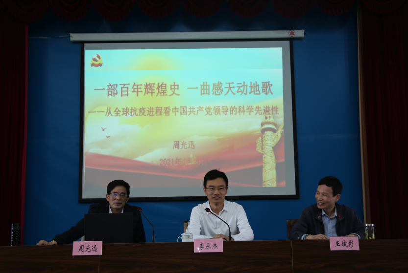 4月26日下午,周光迅经理受邀赴绍兴市柯桥区交通局开展党史教育宣讲活动,为交通局全体党员干部作题为《一部百年辉煌史,一曲感天动地歌》的专题讲座,活动由柯桥区交通运输局总工程师王斌彬主持,柯桥区委常委、宣传部长李永杰出席并致辞。