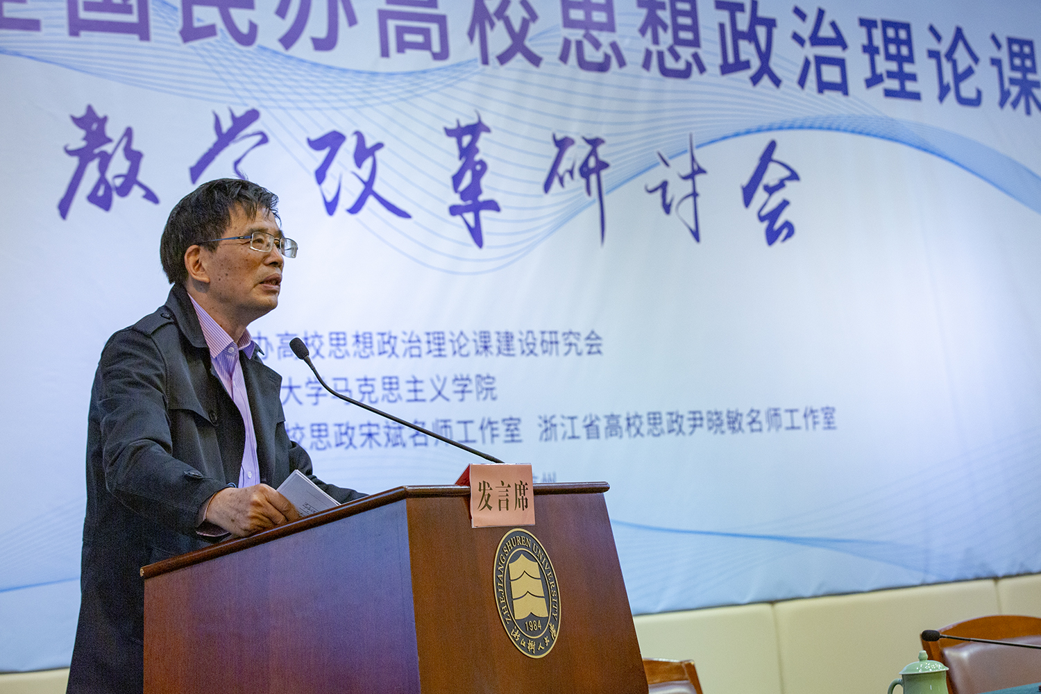 浙江省教育厅宣教处处长陈雷在致辞中指出,此次研讨会以新时期民办高校思政课改革创新为主题,相关论文以习近平总书记“三·一八”重要讲话精神为引领,对新时期思政理论课教学内容、教学方法、教育实践,特别是线上线下相结合的“抗疫型”新教学模式进行了有益探索,通过这次会议定会推进民办高校思政理论课建设并取得新的成绩,希望树人大学借这次研讨会的东风,学习其它高校的先进经验,不断推进思政理论课建设,力争早日建成浙江省重点yl永利集团官网登录。