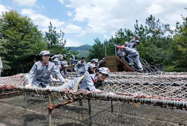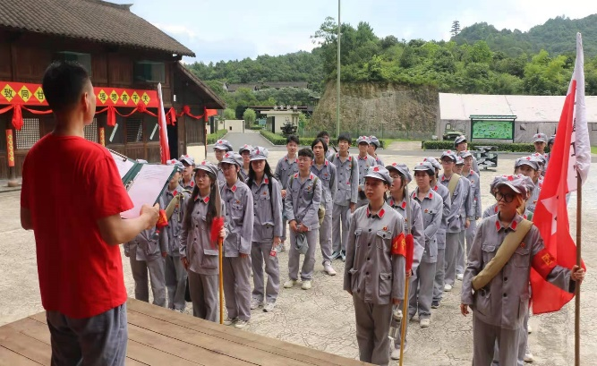 7月7日中午,“武义后陈村实践服务队”与其它小队一起乘车到达东阳市横店长征博览城,首先品尝了一顿忆苦思甜的红军餐,随后换上红军装,列队于广场,为英雄烈士敬献花圈。在教官带领下重走长征路,一边聆红军长征的故事,一边体验当年红军所遇艰难险阻。在长达两个小时的征途中,大家顶着烈日忍着口渴,锻炼自己的意志品格,尽管汗水湿透了衣襟,依然咬牙坚持无一人退出,最后大部队胜利会师于终点站,得到了基地教官和江宏老师的高度赞扬,为第一天的行程留下了精彩一笔。