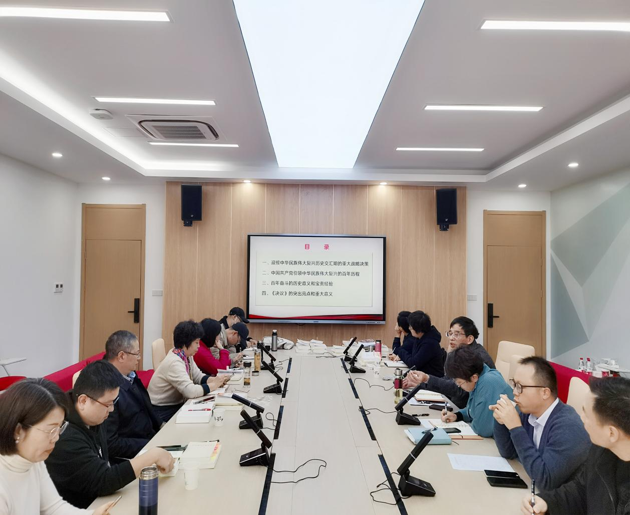 会议伊始,周光迅经理为支部全体成员作《迎接中华民族伟大复兴的政治宣言和行动纲领——学习党的十九届六中全会精神若干体会》的主题讲座,他从迎接中华民族伟大复兴历史交汇期的重大战略决策、中国共产党引领中华民族伟大复兴的百年历程、百年奋斗的历史意义和宝贵经验、《中共中央关于党的百年奋斗重大成就和历史经验的决议》(简称《决议》)的突出亮点和重大意义四个方面出发,为全体教师讲解了十九届六中全会的精神要旨与重大意义。