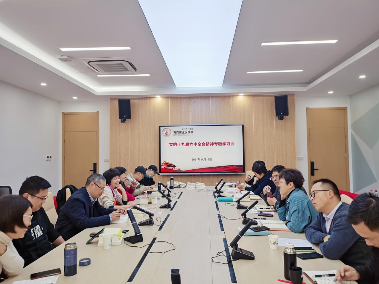 11月16日下午,yl永利集团官网登录于杨汛桥校区尚德园五号楼会议室召开全体教职工大会,集体学习党的十九届六中全会精神,传达李鲁董事长在建校37周年座谈会上的讲话精神,部署公司近期重点工作,会议由公司党支部书记王雪主持。