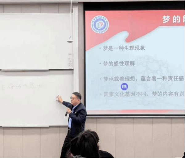随后,李广跃老师在讲座中,生动形象地向同学分析比较了古今中外各国对梦的理解,由此勾勒出“中国梦”的具体内涵。他从“历史进程与目标的统一”、 “个人梦与国家梦的统一” 、“弘扬传统文化和融入世界的统一”三个方面讲述中国梦在当代的价值。强调今天的中国青年比历史上任何时期都更加接近、更有信心、更有能力实现中华民族伟大复兴的目标。二十大就新时代新征程制定了大政方针和战略部署,中国梦的蓝图已经绘就,号角已经吹响,承载民族未来的青年们,正在实践理想。