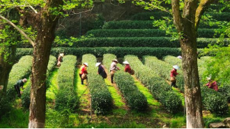 下午13:00-16:00,书社成员自“九溪”公交车站开始步行,见树木葱茏、花缀枝头,听流泉淙淙。沿途茶园飘香,茶人忙碌,他们以勤劳谱写春日赞歌。至“杨梅岭”,白色民居掩映青山绿树间,村民们倚靠自然、携手自然,为美好生活而努力着。