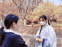上午9:00-10:00,书社成员在白塔公园开展“背古诗,得奖品”活动。不同年龄阶层的人受邀参与活动,他们背诵了与“春天”有关的古诗,书社成员将奖品递送参与者的同时会介绍“花朝”的历史与节日习俗,借此弘扬传统文化。清代南方以二月十二为花朝。这个节日在气象开阔的唐代曾与中秋齐名,在清末逐渐衰落,在二十一世纪出头几乎悄无声息。今年四月二日,暨农历闰二月十二。