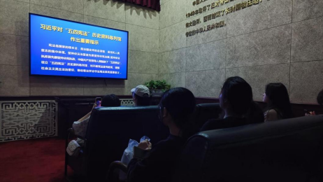 许是天公作美,在社员们对展馆进行了初步的游览之后,正好遇上展馆播放《中华人民共和国第一部宪法诞生记》电视文献纪录片的时间。随即,社员们在工作人员的引领下进入播放区域,纪录片全长16分钟,大家或坐或站,全神贯注,没有一人中途离场。