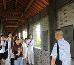 6月29日,团队出发前往张思古村。文化长廊将村史与和合文化巧妙结合,每一处建筑构思都是体现。当看到张思村中文化礼堂时,老师向我们介绍了文化礼堂在乡村文化建设中的重要地位和作用。村落中的基础设施完备,同时也保留了原生态的朴素,还新建了不少娱乐设施,音乐酒吧、工艺社等。而后,我们又参观了位于张思古村附近的宗渊书院。书院建造在水上,由大隐集团公司打造,包含民宿,餐饮等众多项目。大隐集团将和合文化与张思古村巧妙结合,积极推动当地民宿经济与和合文化的融合与发展。