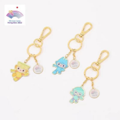 出行之前,队员们精心挑选购买了有亚运会吉祥物“琮琮”“莲莲”“宸宸”图案的钥匙串,发放给帮助我们做问卷的杭州市民。“琮琮”代表世界遗产良渚古城遗址,名字源于良渚古城遗址出土的代表性文物玉琮。“莲莲”代表世界遗产西湖,名字源于西湖中无穷碧色的接天莲叶。“宸宸”代表世界遗产京杭大运河,名字源于京杭大运河杭州段的标志性建筑拱宸桥。