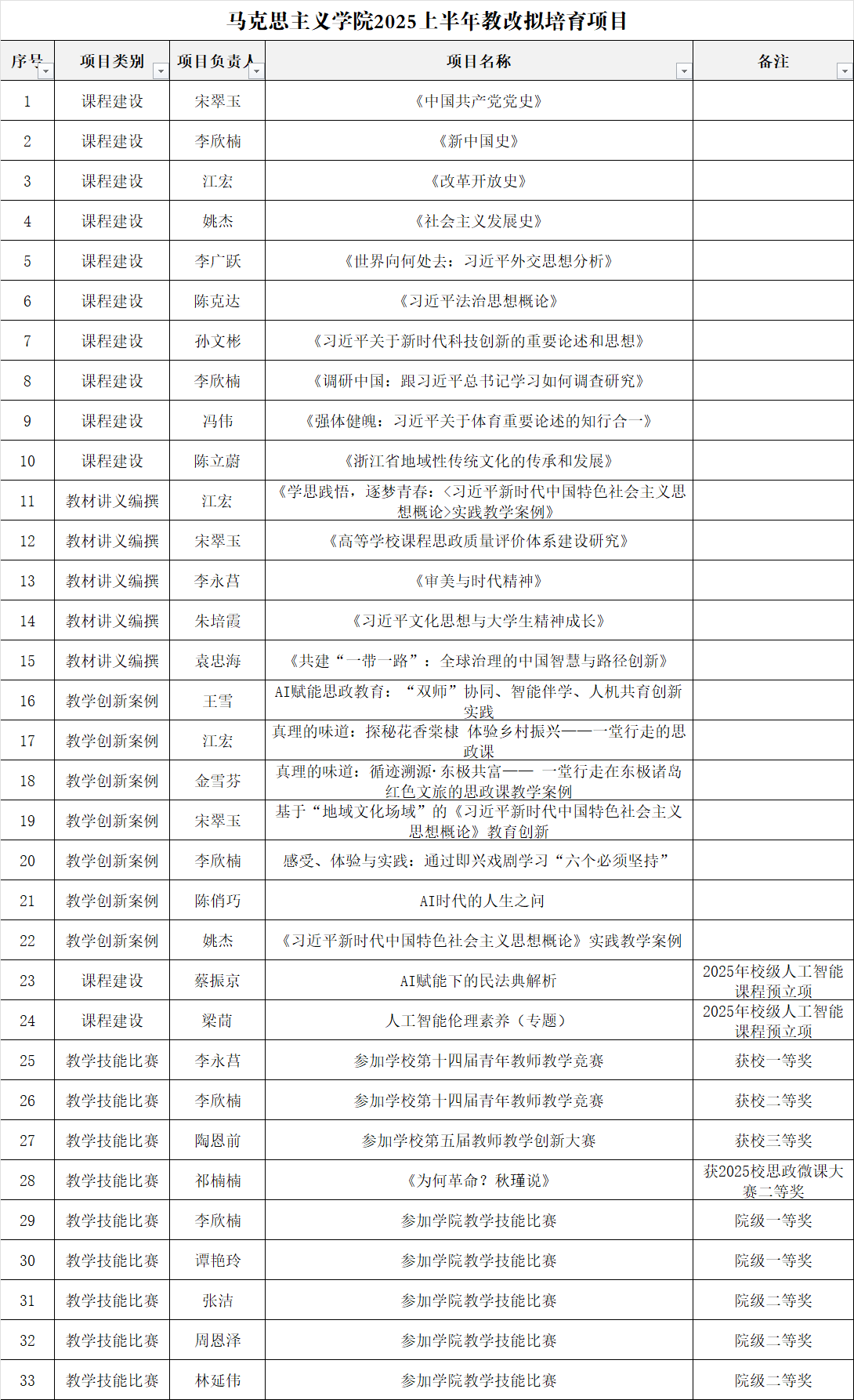 根据《关于开展2025年院级教学改革项目培育工作的通知》,经个人申报、校外专家评审,公司教学委员会及党政班子会审议,拟对《中国共产党党史》等33个项目资助培育,现予以公示。
