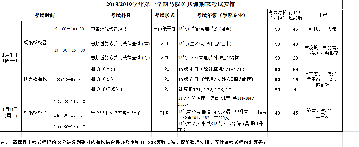 附件1:2018/2019学年第一学期马院公共课期末考试安排: