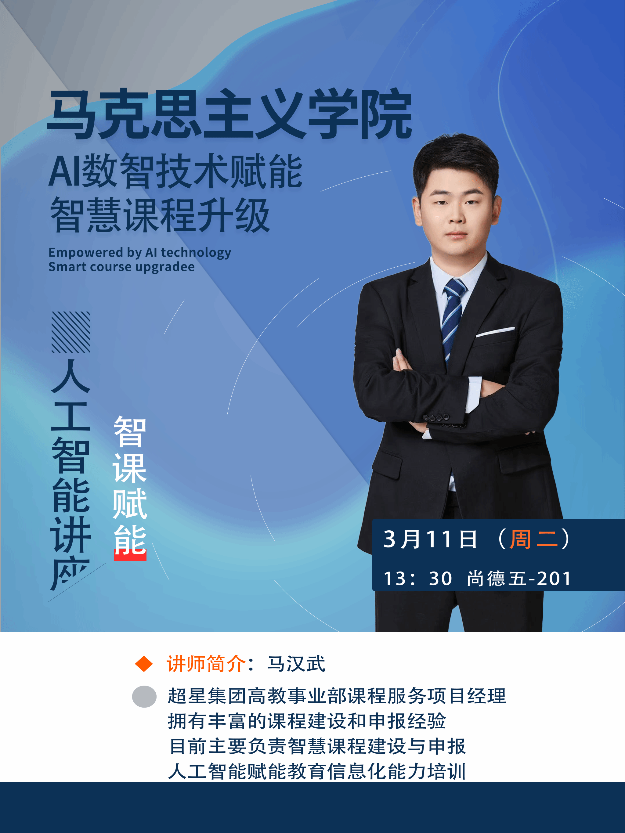 主讲人简介:马汉武,超星集团高教事业部课程服务项目经理;拥有丰富的课程建设和申报经验;目前主要负责智慧课程建设与申报人工智能赋能教育信息化能力培训