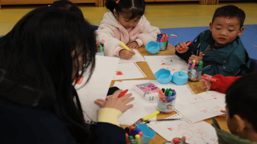 除了故事宣讲,在幼儿园的活动室里,一场以红色文化为主题的绘画活动正如火如荼地开展。小朋友们用稚嫩的小手紧握彩笔,在画纸上尽情挥洒着对红色故事的理解与想象。他们将鲜艳的五星红旗画在蓝天之下,五颗金星闪耀着光芒,那是他们对祖国最直观的热爱表达。讲师们在一旁耐心引导,轻声讲述着每一个画面背后的历史意义,帮助小朋友们更好地用色彩和线条诉说心中的红色情怀。